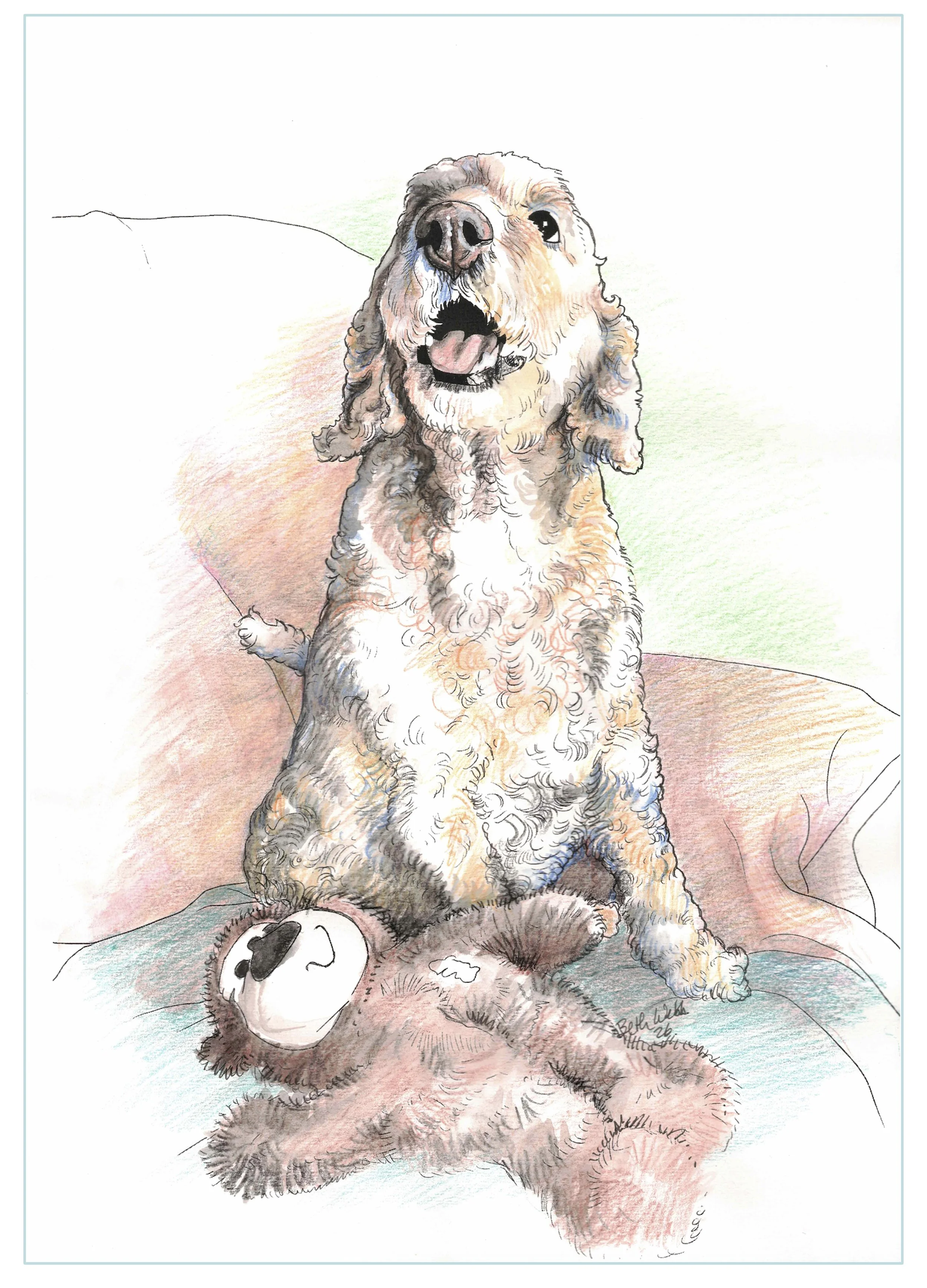 ‘Best Friends’ water colour pencil with black ink